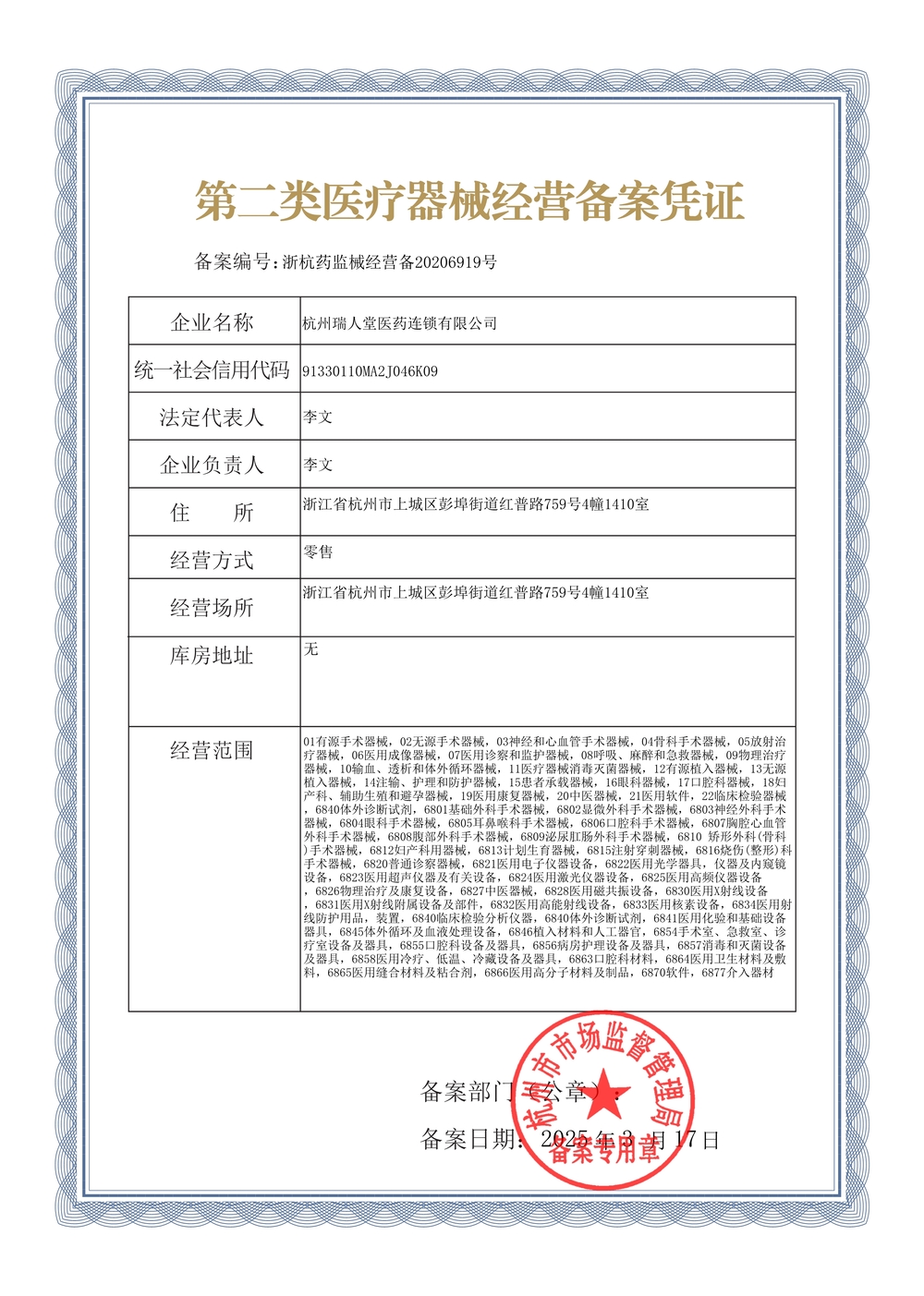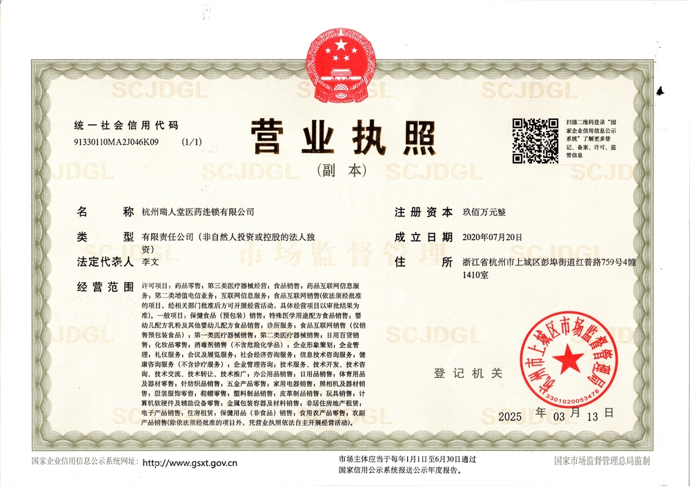 杭州瑞人堂有限公司成立于2020年7月20日,注册地址在浙江省杭州市上城区彭埠街道红普路759号4幢1410室,主要从事药品零售(连锁)(范围详见《药品经营许可证》,凭有效许可证经营);预包装食品兼散装食品、保健食品、婴幼儿配方乳粉批发兼零售;第一类医疗器械、第二类医疗器械零售;化妆品、日用百货销售;门诊部服务(限分支机构经营)。。欢迎交流合作!